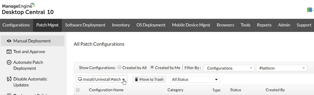 - W SCCM aktualizacje oprogramowania bywają bardzo skomplikowane. Istnieje wiele elementów procesu łatania SCCM, które należy przeprowadzić ręcznie. Aby rozpocząć aktualizację oprogramowania, musisz zainstalować IIS, WSUS i WUA oraz skonfigurować punkt aktualizacji oprogramowania wraz z tuzinem innych ustawień. W Desktop Central konfiguracja i aktywacja procesu automatycznego wdrażania poprawek zajmuje mniej niż 5 minut.