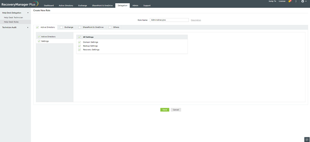 Oprócz omówionych kwestii, Recovery Manager Plus dostarczy użytkownikowi funkcję delegowania zadań dla zdefiniowanych techników pomocy technicznej. Uprawnienia danej osoby skonfigurujemy elastycznie, zgodnie z zadaniami, jakie powinna pełnić w organizacji.