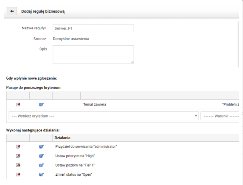 Zostało to zautomatyzowane przy użyciu reguły biznesowej, która w naszym wypadku wykonuje się jeśli temat zawiera daną frazę.