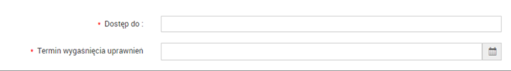 Użytkownik, który wnioskuje o nadanie uprawnień będzie musiał uzupełnić pola: