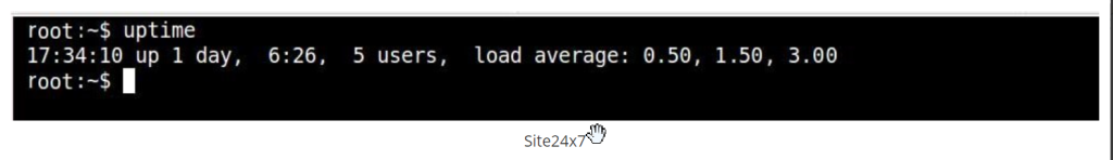 Zazwyczaj polecenie top lub uptime zwraca odpowiedź serwera z danymi wyjściowymi, które wyglądają następująco: