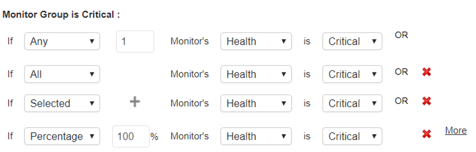 Dzięki temu, w przypadku awarii jednego z serwerów, aplikacja nie określi krytycznego stanu, a jedynie stan ostrzeżenie, dzięki czemu cała usługa kluczowa również nie zostanie oznaczona w stanie krytycznym.