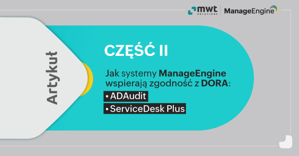 Zarządzanie ryzykiem związanym z ICT i zapewnienie operacyjnej odporności cyfrowej to kluczowe elementy regulacji DORA. Narzędzia ManageEngine, takie jak ADAudit i ServiceDesk Plus, oferują kompleksowe rozwiązania, które pomagają organizacjom finansowym spełnić te wymagania. W następnych trzech artykułach, będziemy omawiać dalsze artykuły i związane z nimi aplikacje, które pozwolą osiągnąć zgodność z rozporządzeniem DORA.